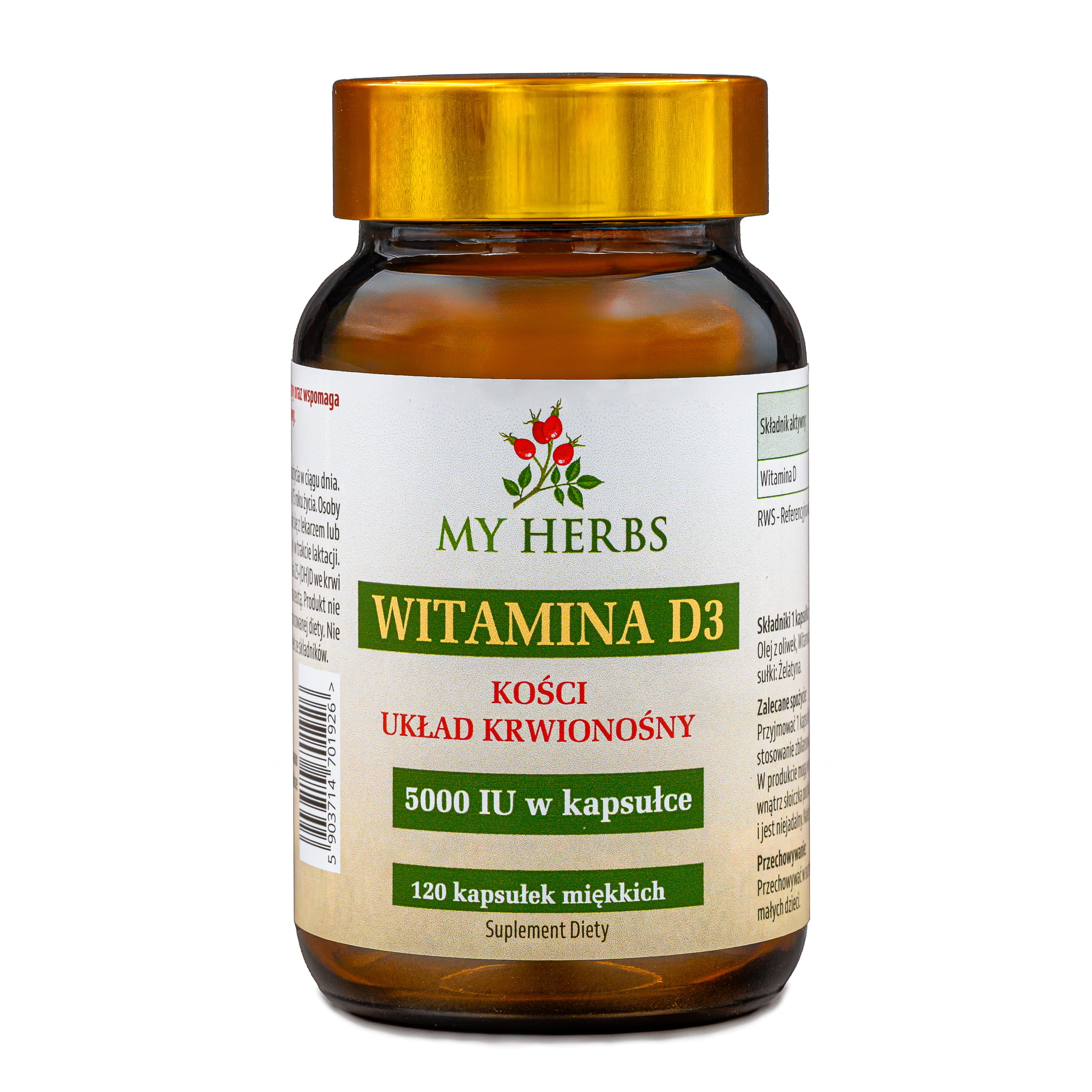 My Herbs D3 K2 z mocną dawką 12 000 IU to skuteczny suplement dla zdrowia kości, zębów i wzmocnienia odporności. Połączenie witaminy D3 z K2 w formie MK-7 zapewnia optymalne wchłanianie wapnia i jego właściwą dystrybucję w organizmie. 120 kapsułek wystarcza na 4 miesiące stosowania. Zadbaj o harmonię swojego ciała z My Herbs.