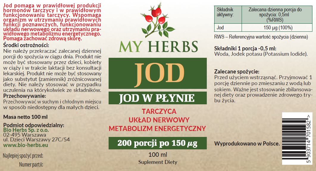 Jod naturalny koncentrat jodu w płynie Bio Herbs to wysokiej jakości suplement diety, który dostarcza niezbędnej dawki jodu. Regularne stosowanie tego produktu może przyczynić się do poprawy funkcjonowania tarczycy, układu nerwowego oraz ogólnego samopoczucia.