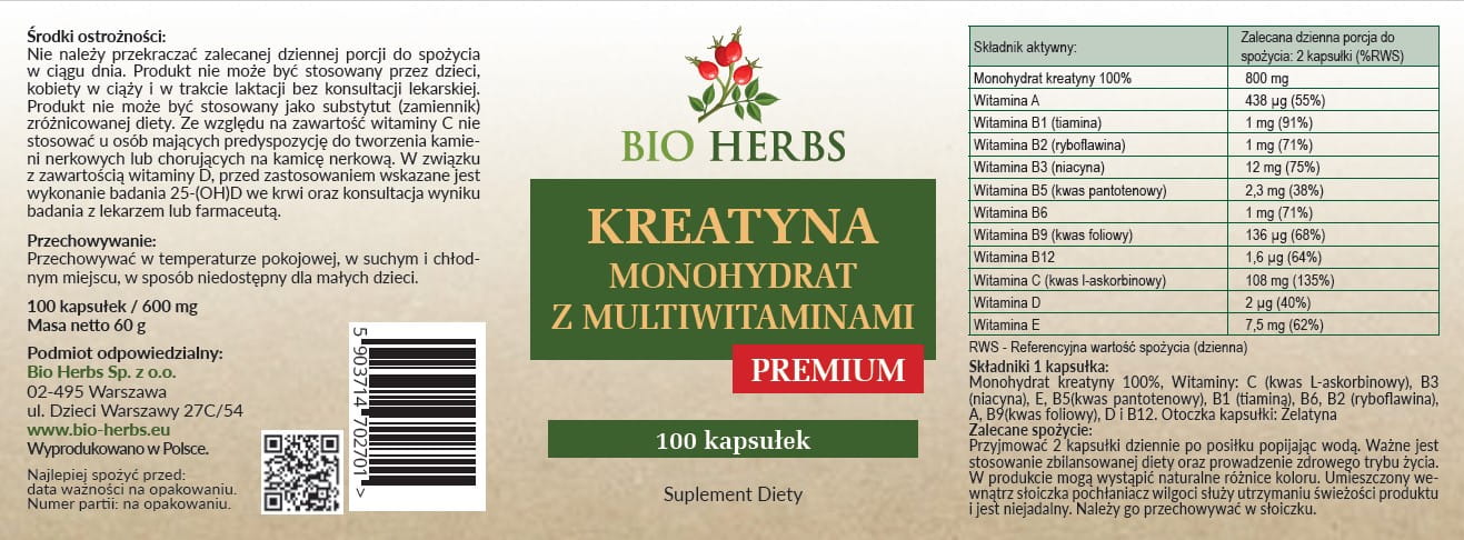 Kreatyna monohydrat z multiwitaminami w kapsułkach – najwyższej jakości suplement zwiększający siłę i masę mięśniową. Przyspiesza regenerację i wspiera organizm podczas intensywnych treningów.