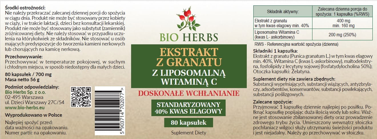 Liposomalna Witamina C z Ekstraktem z Granatu to innowacyjny suplement, który zapewnia skuteczną ochronę Twojego organizmu. Dzięki unikalnej formule, witamina C jest lepiej wchłaniana i działa dłużej, wspierając Twoje zdrowie i witalność.